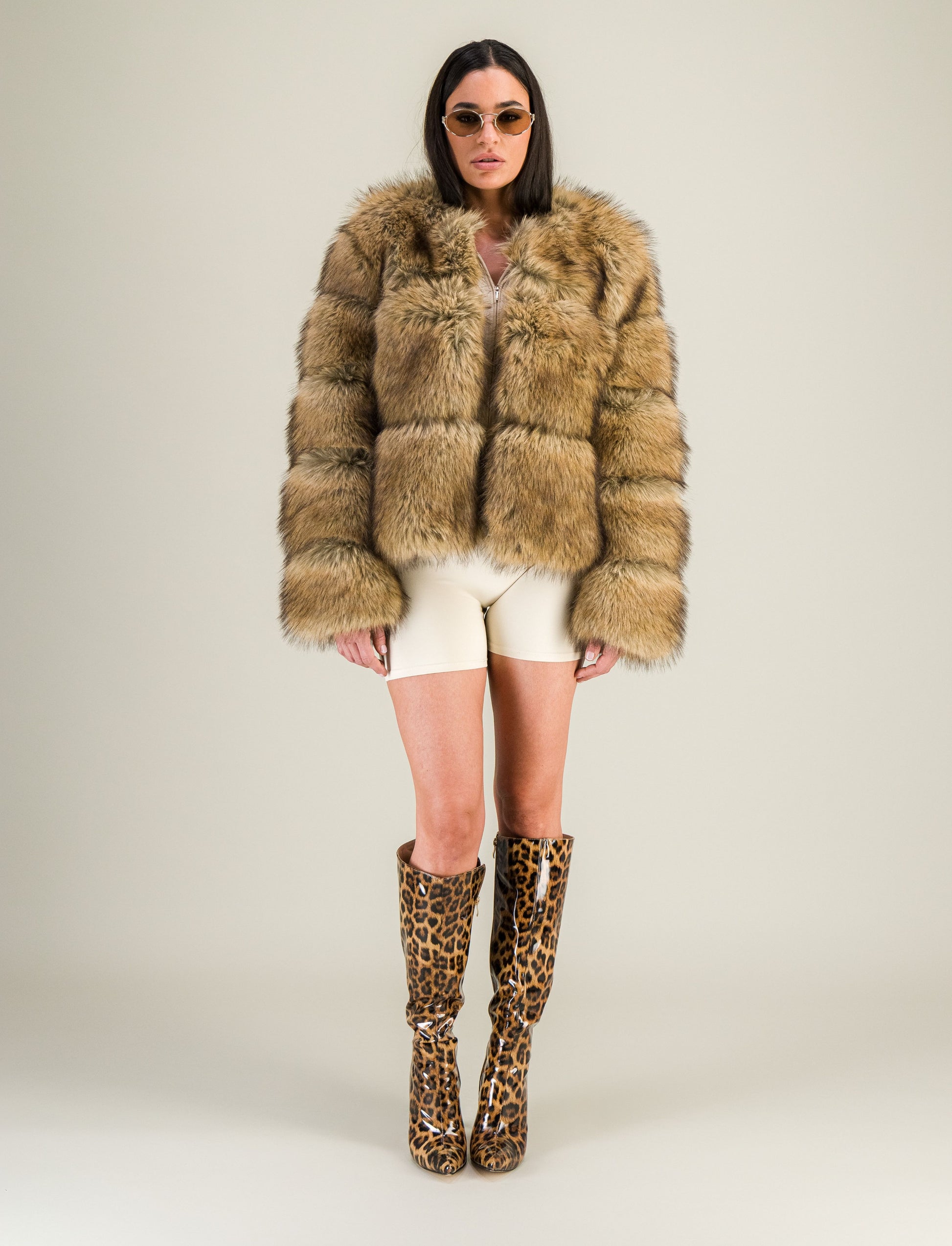Inspirées par la force animale et la féminité instinctive, nos Fourrures Vegan incarnent une femme libre, puissante et assumée.